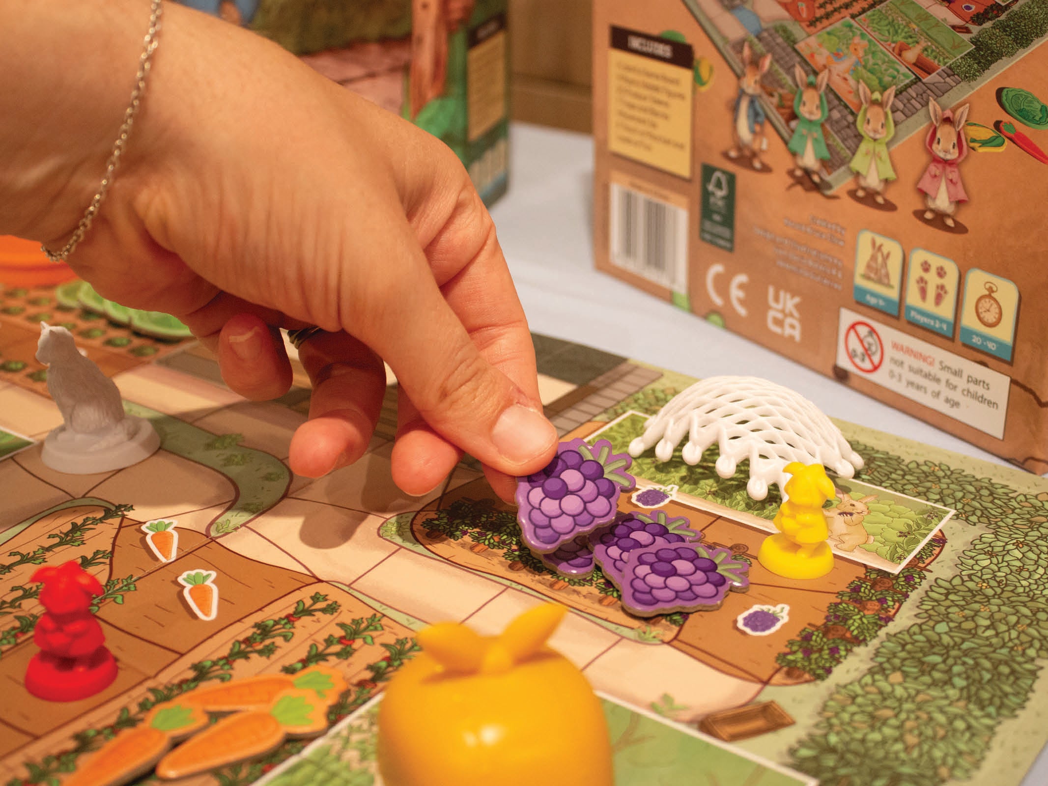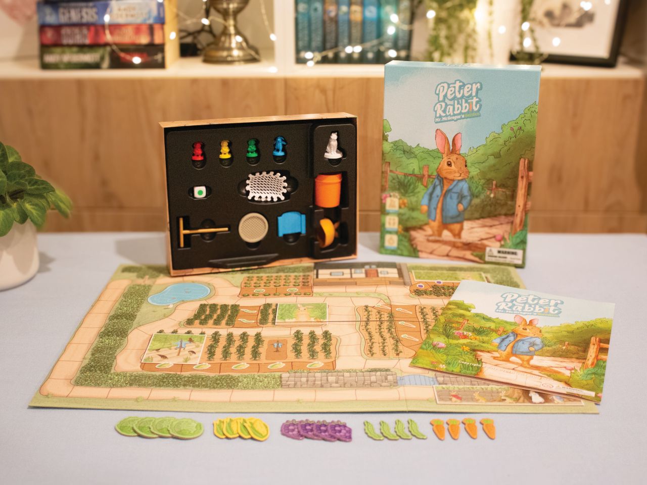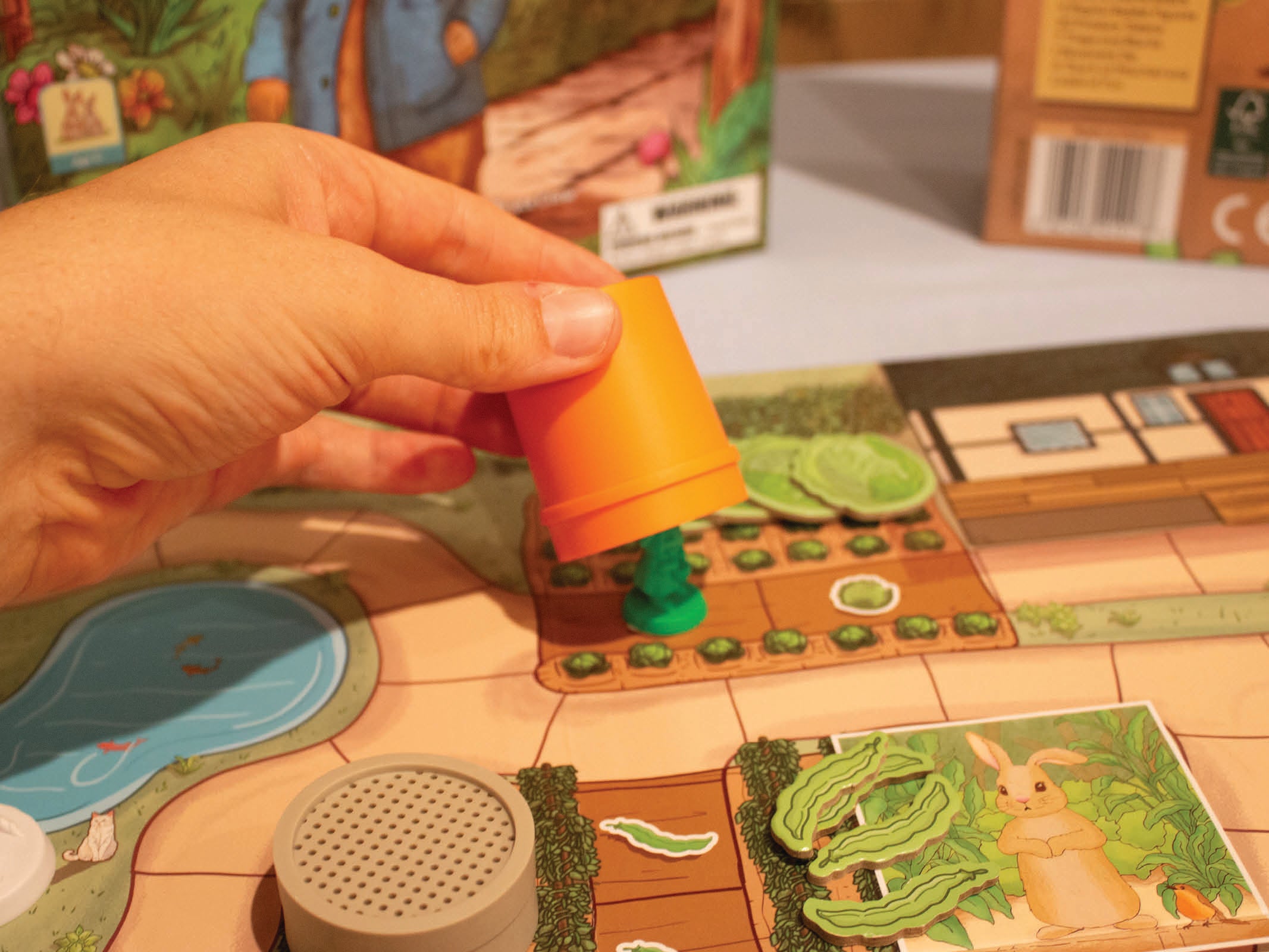 - Board Layout: Place the board in the center, with the rabbits’ sand-bank home in one corner and Mr. McGregor’s Garden™ across from it.